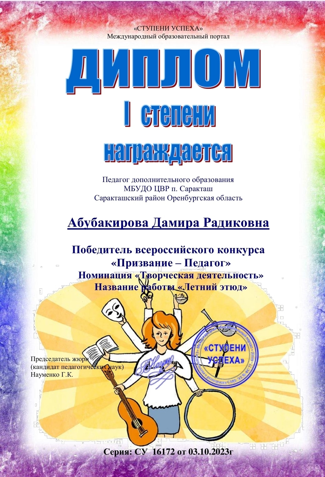 Всероссийский конкурс Призвание - Педагог" Международный образовательный портал "Ступени успеха" 03.10.23